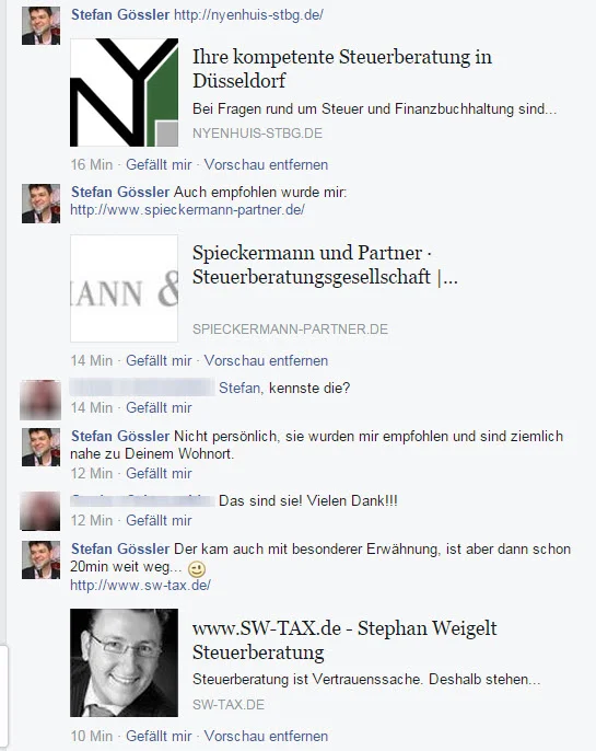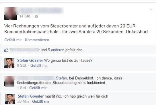 Mein Facebook-Kontakt sucht also einen neuen Steuerberater. Da kann ich doch helfen, oder? Über das Impressum seiner Website habe ich rasch den genauen Wohnort herausgefunden.