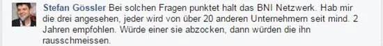 Zum Abschluss noch ein Statement über mein BNI Netzwerk soll aber nun auch nicht fehlen, immerhin hat es mir diese Empfehlung möglich gemacht.
