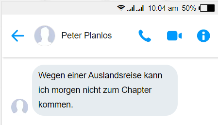Das sind die Klassiker. Doch einer wird oft übersehen: professionelle Menschen haben ihren Kalender im Griff! Die wissen, welche großen Themen auf die zukommen, welche Projekte schon lange vor ihren Stichtagen viel Aufmerksamkeit brauchen und die haben natürlich ihre Reisen, Seminare und Urlaube geplant. Daher ist die folgende Nachricht in einem BNI Chat eine komplette Entblößung.