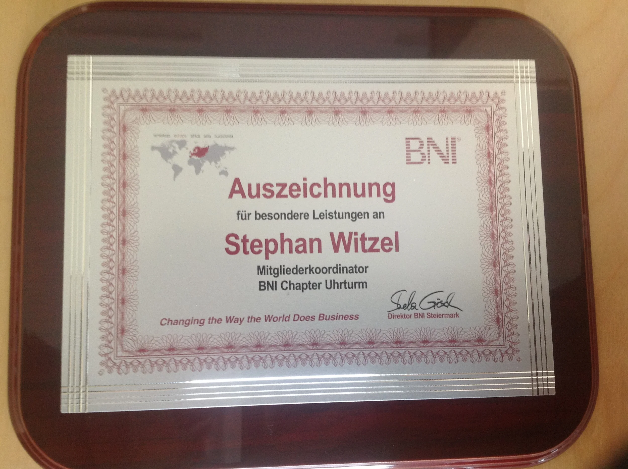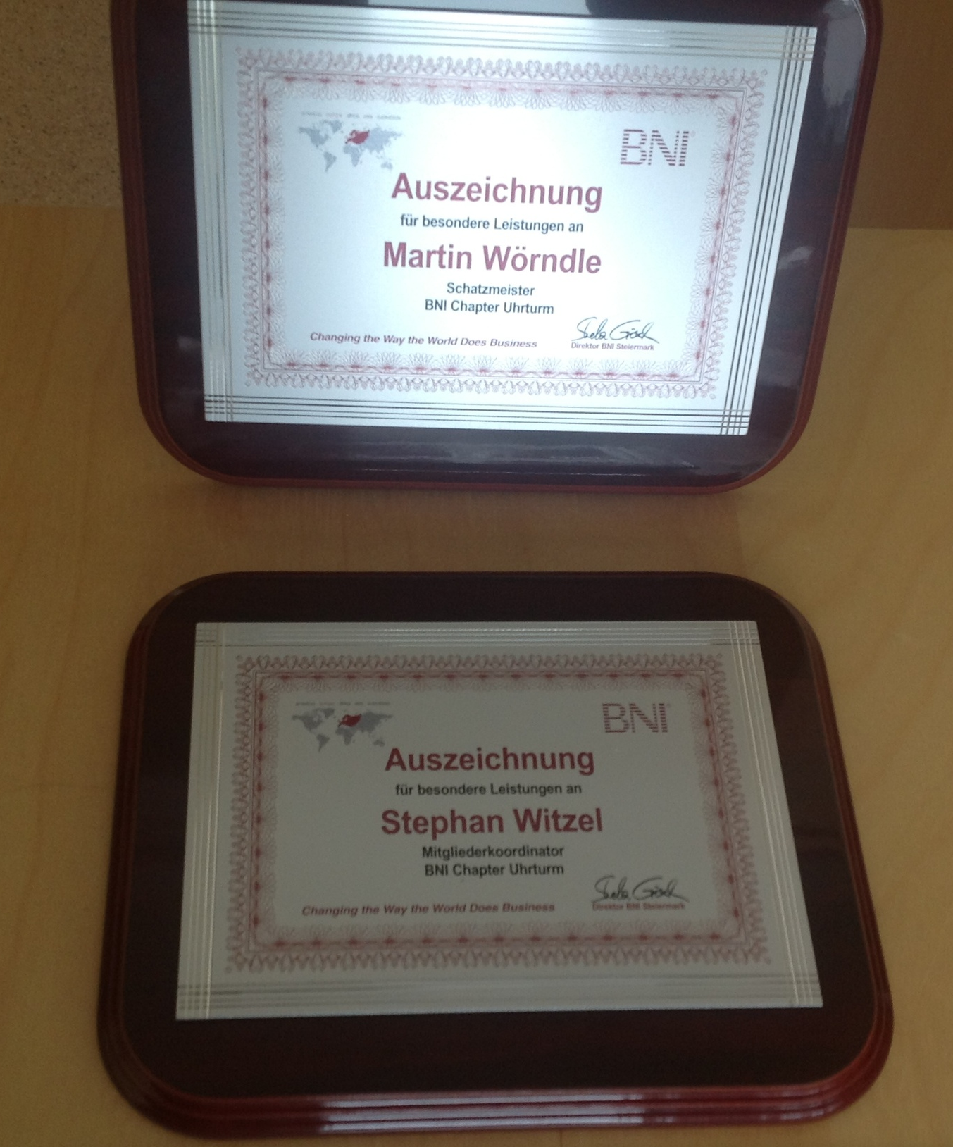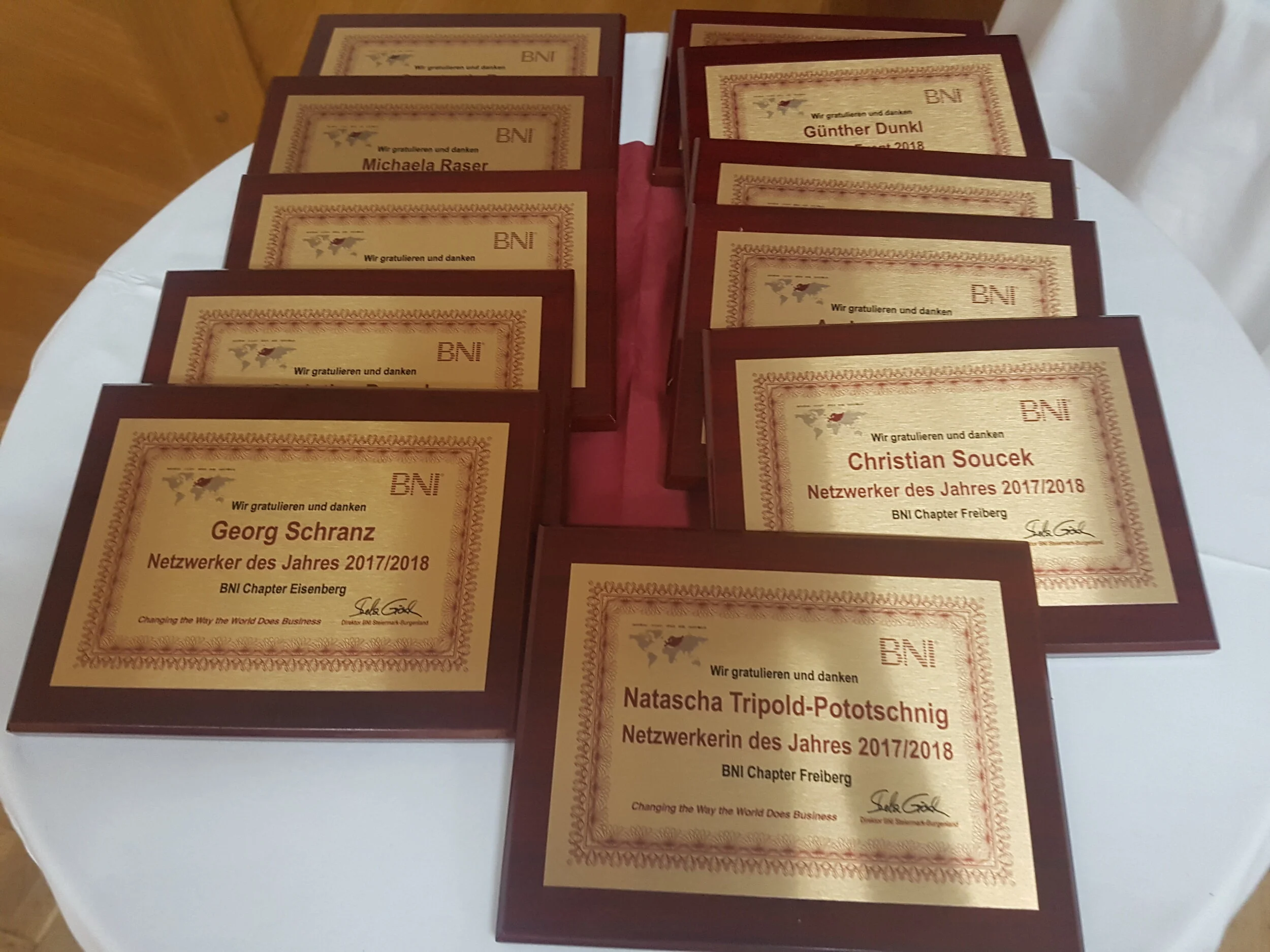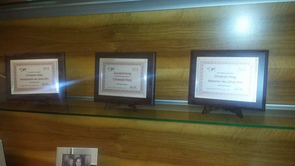 BNI Auszeichungen können auch im Büro repräsentativ aufgestellt werden. Kunden, die das sehen, bekommen von Dir einen besseren Eindruck und die einen oder anderen möchten dann vielleicht auch einmal Dein Chapter besuchen.