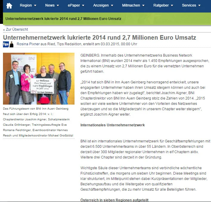 Es gibt unzählige regionale Medien. Manche werden gedruckt, andere erscheinen nur online. Sie alle fokussieren auf regionale Ereignisse und sind daher eine gute Chance, das Chapter mit aktuellen Erfolgsstories zu versorgen.